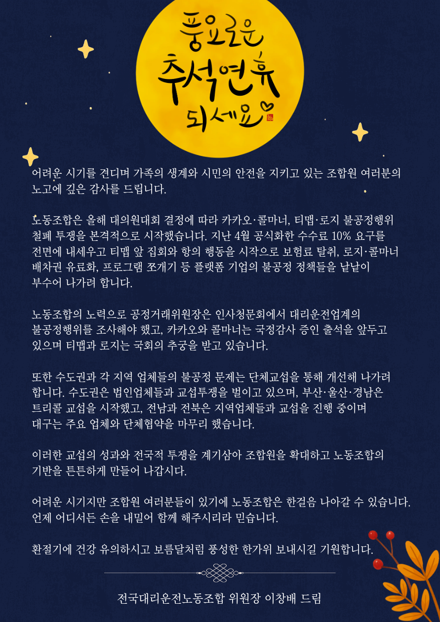 풍요로운 추석 연휴 보내세요~