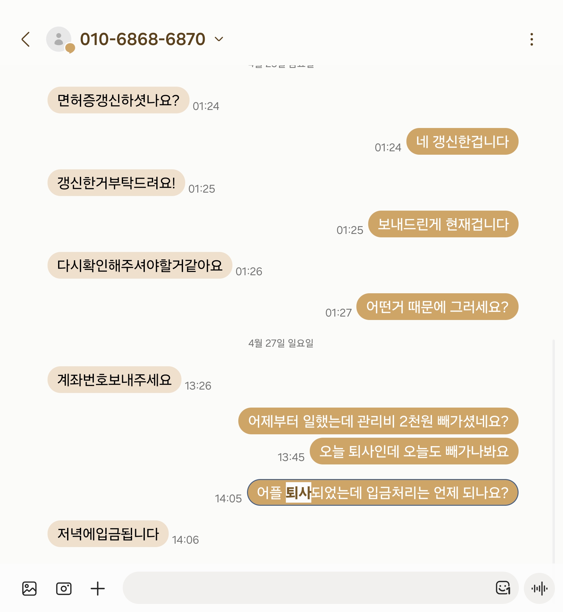 단체 3콜의 그중 시내로 가는 콜을 잡았는데 손님이 그건 취소 됐다고 업체에 전화해서 취소 됐다고 말하니까 그럼 기사님이 약간 시골로 가는거 안잡혔으니까 5천원 더 받아줄테니까 가세요 제가 지역 잘몰라서 제가 잡은시내보다 더 가깝다고 하여 갔는데 완전 시골에 시내랑 차로 15분이나 떨어진곳에 간겁니다 업체에 전화해서 왜 이런곳을 이가격에 보내냐고 전화했는데 업체사장이 바로 전화와서 기사가 왜 금액을 따지냐 따지면 안되지 금액은 우리가 정하는식으로 말하더라구요 어의가 없어서 일단 다른콜을 해야해서 끊었는데 본인이 분해서 그런지 또 연락이 와서 퇴사시키겠다고 해서 그러라고 하고 말았는데 저렇게 충남에 있는 더킹연합 콜을 다 배차제한이 걸렸더라구요 업체는 충남 홍성에 있는 오빠대리 입니다 010-6868-6870 가입시 연락주고 받은 전화번호입니다