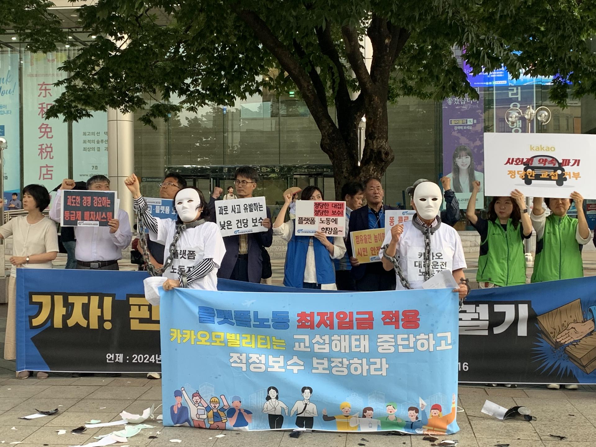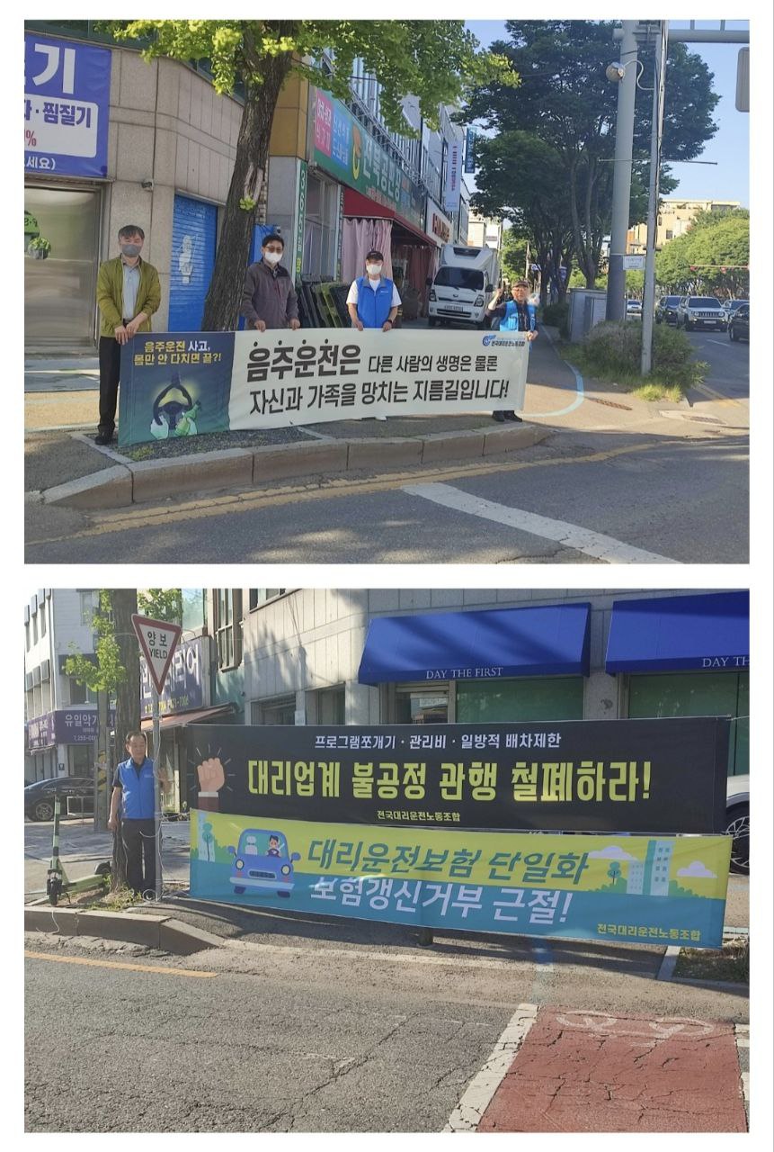 전국대리운전노동조합은 5월 31일(금) 대리운전노동자의 최저임금 적용, 적정보수 보장과 카카오모빌리티의 성실교섭을 촉구하는 선전전을 전국에서 진행했습니다.