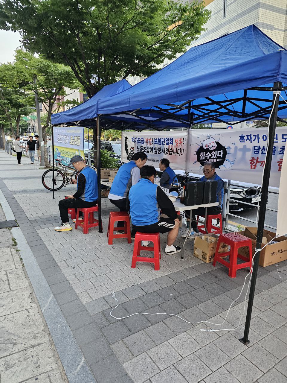 전남지부는 여수시청앞에서, 전북지부는 덕진경기장 사거리에서, 부산/울산/경남지부는 부산 내외동 간이쉼터 앞에서, 대전지부는 봉명동 쉼터 인근에서, 충북지부는 비하동 선관위 사거리에서 동료와 시민들을 만났습니다. 대구지부는 28일 일찌감치 조합원들과 함께 밤샘 선전전을 진행했습니다.